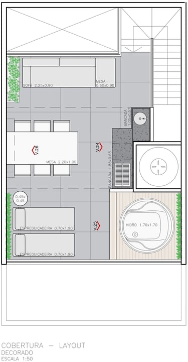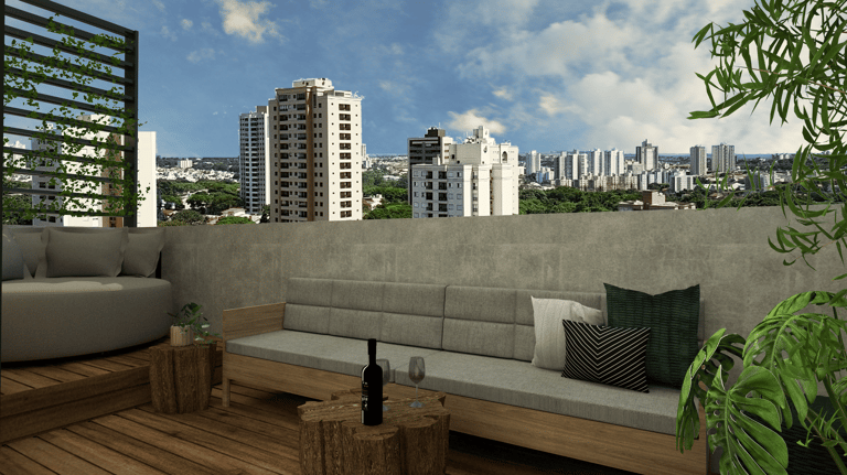 Aproveite o melhor do entretenimento em um rooftop que inclui infraestrutura para pergolado, churrasqueira e hidromassagem com vista panorâmica.