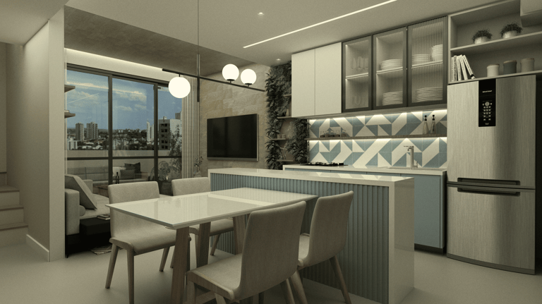 Estilo e Conforto em Cada Espaço. Um ambiente espaçoso que une sala de estar, cozinha americana e sacada para momentos únicos.